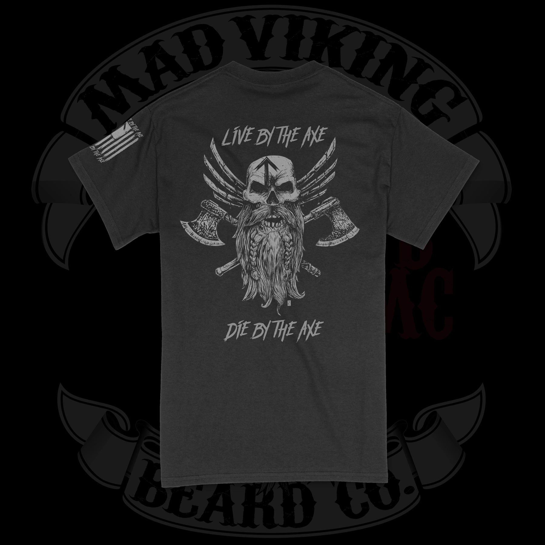 We live by the axe and we die by the axe. Its a code, its an oath we swore upon eachother. Mad Viking is not just a beard company or a mens grooming company. We are a worldwide beard club as well. We are united in a basic brotherhood. Our creed is simple. We live by 9 virtues and we forge our path through the world as we strive to be better and to do better, not only for ourselves but for others as well. The MAD VIKING AXES TEE is a direct reflection of our creed. Pick up an AXES tee and rep with pride! Look below in the tabs for the 9 virtues and for sizing info.