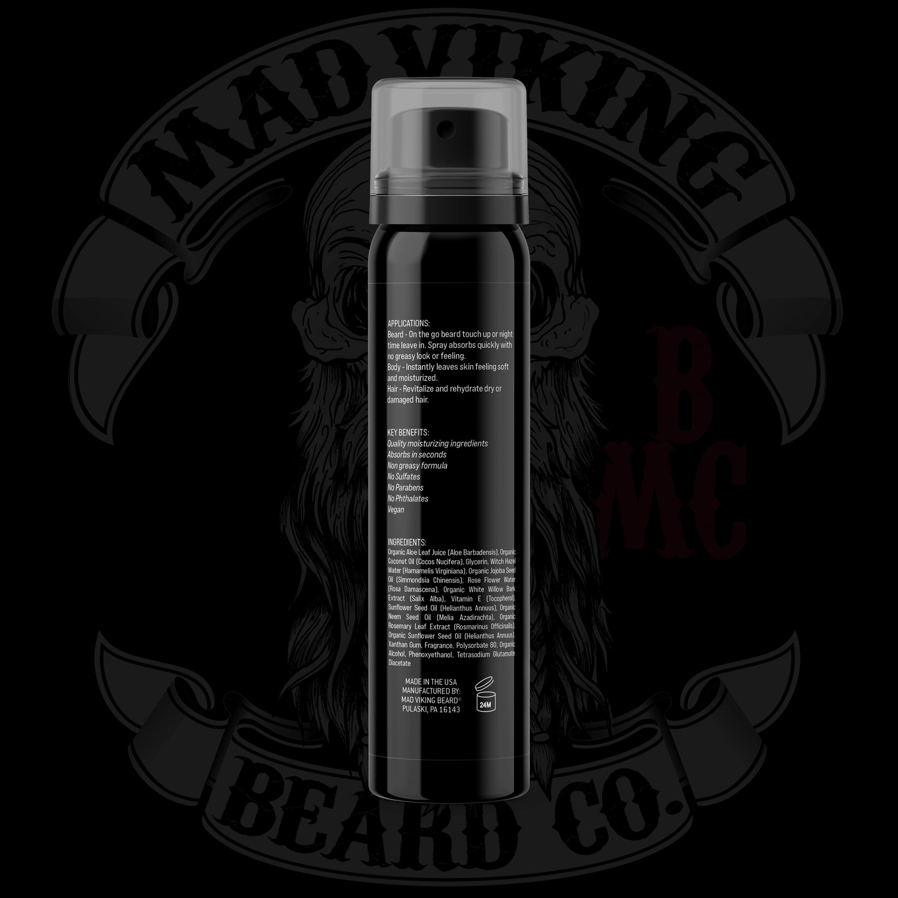 Beard - On the go beard touch up or night time leave in. Spray absorbs quickly with no greasy look or feeling.