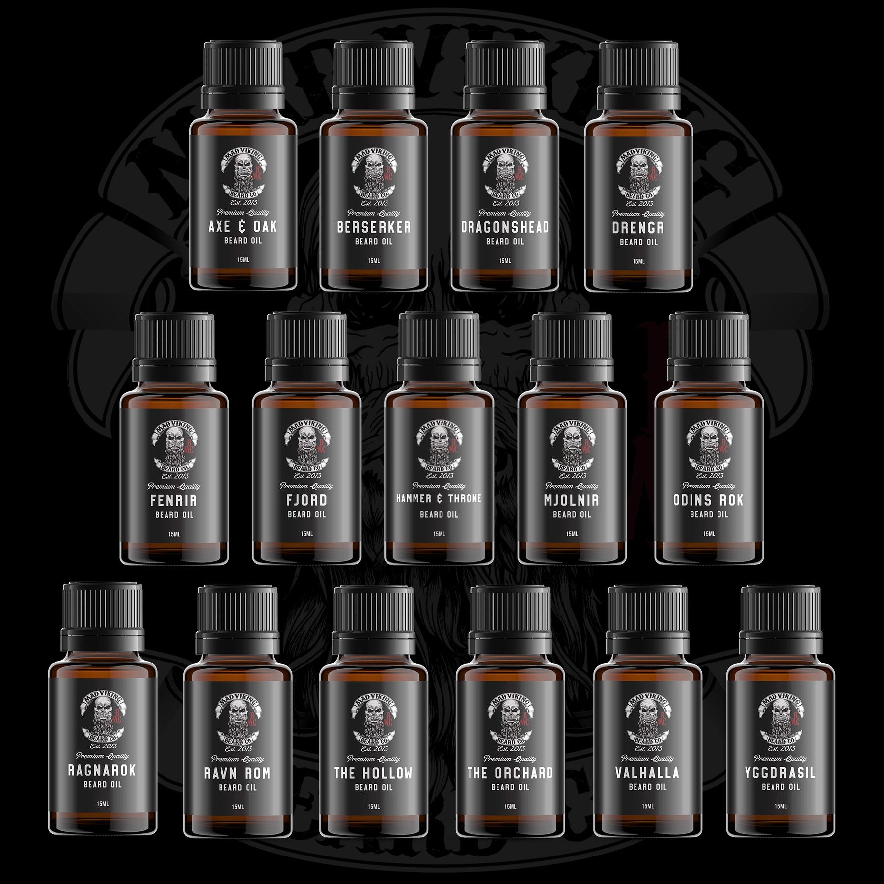 Beard Oil is the essential product for any beardsman. Beard oil has so many benefits to keeping a full and healthy good looking beard. Mad Viking beard oils do that and so much more. Our beard oils have been tested the world over and are used by our Mad Viking Beard Team. Rest assured you can not go wrong. You are in good hands. The Mad Viking Sample Beard Oil Kit is a great place to start if you are looking to try out all of our beard oil scents. You get 15 scents totaling a full 7.5oz. Do you only want to try a few out? Go for the Sample Beard Oil 3 Pack instead.