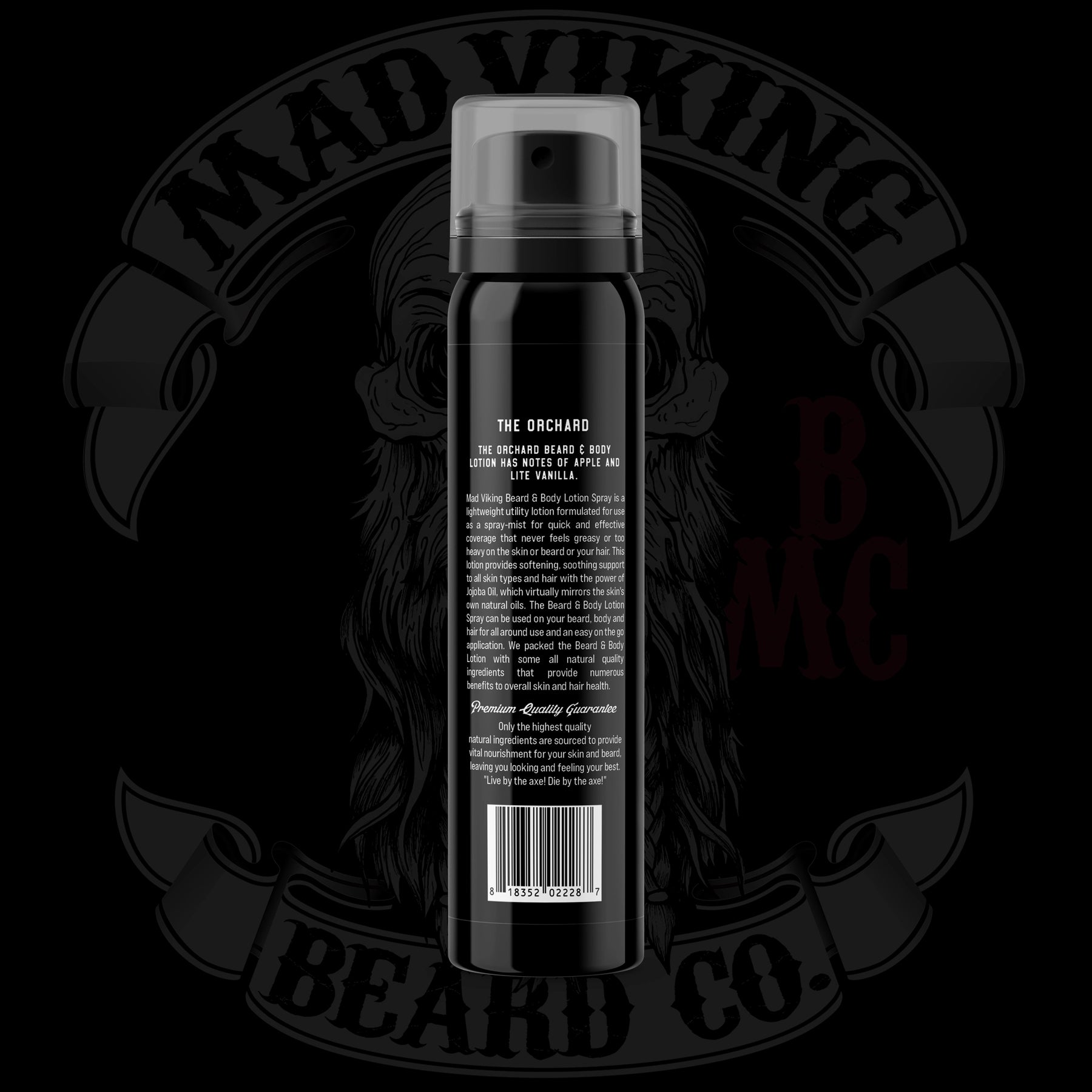 The Orchard Beard & Body Lotion Spray is a lightweight utility lotion formulated for use as a spray-mist for quick and effective coverage that never feels greasy or too heavy on the skin or beard or your hair. This lotion provides softening, soothing support to all skin types and hair with the power of Jojoba Oil, which virtually mirrors the skin's own natural oils. The Beard & Body Lotion Spray can be used on your beard, body and hair for all around use and an easy on the go application. We packed the Beard & Body Lotion with some all natural quality ingredients that provide numerous benefits to overall skin and hair health.