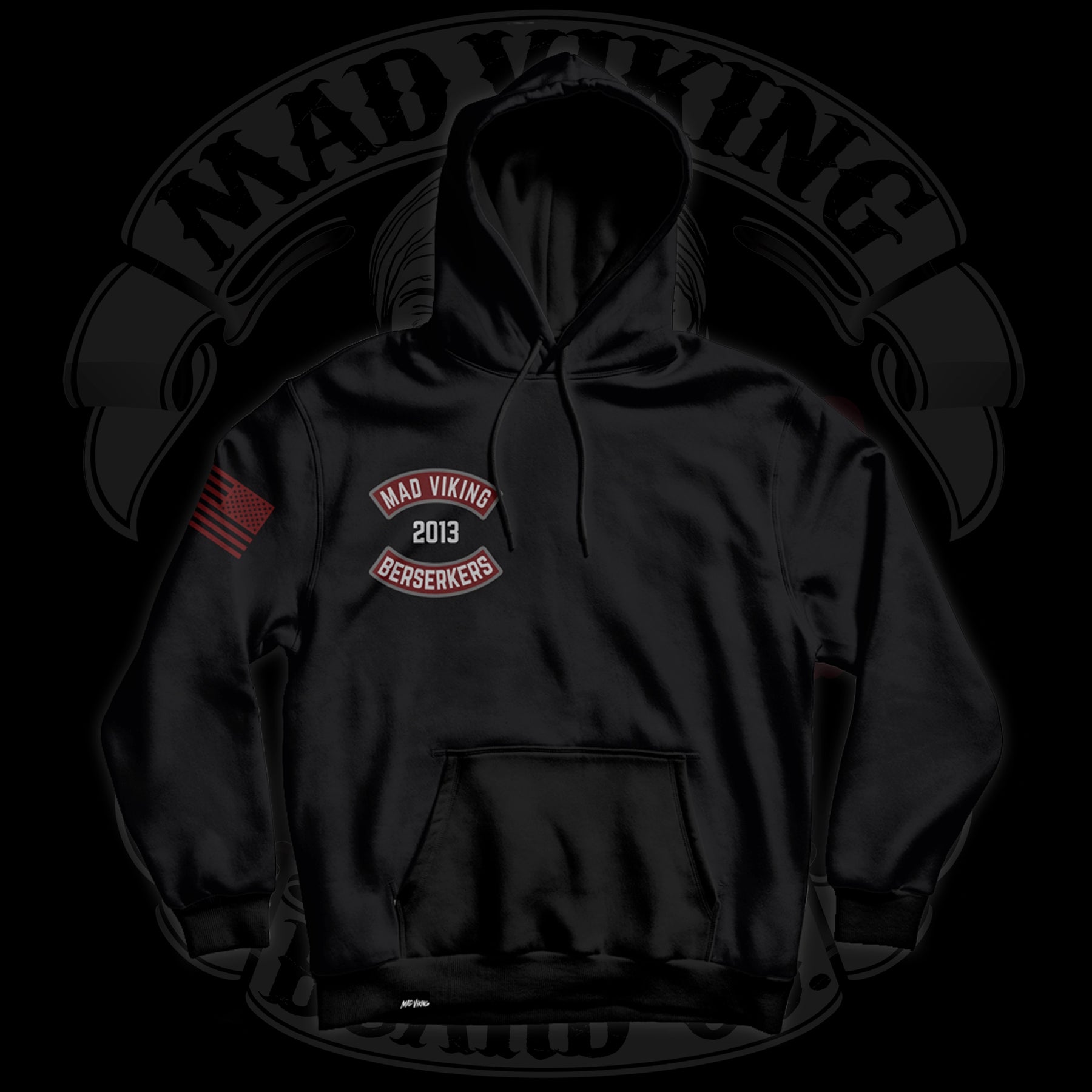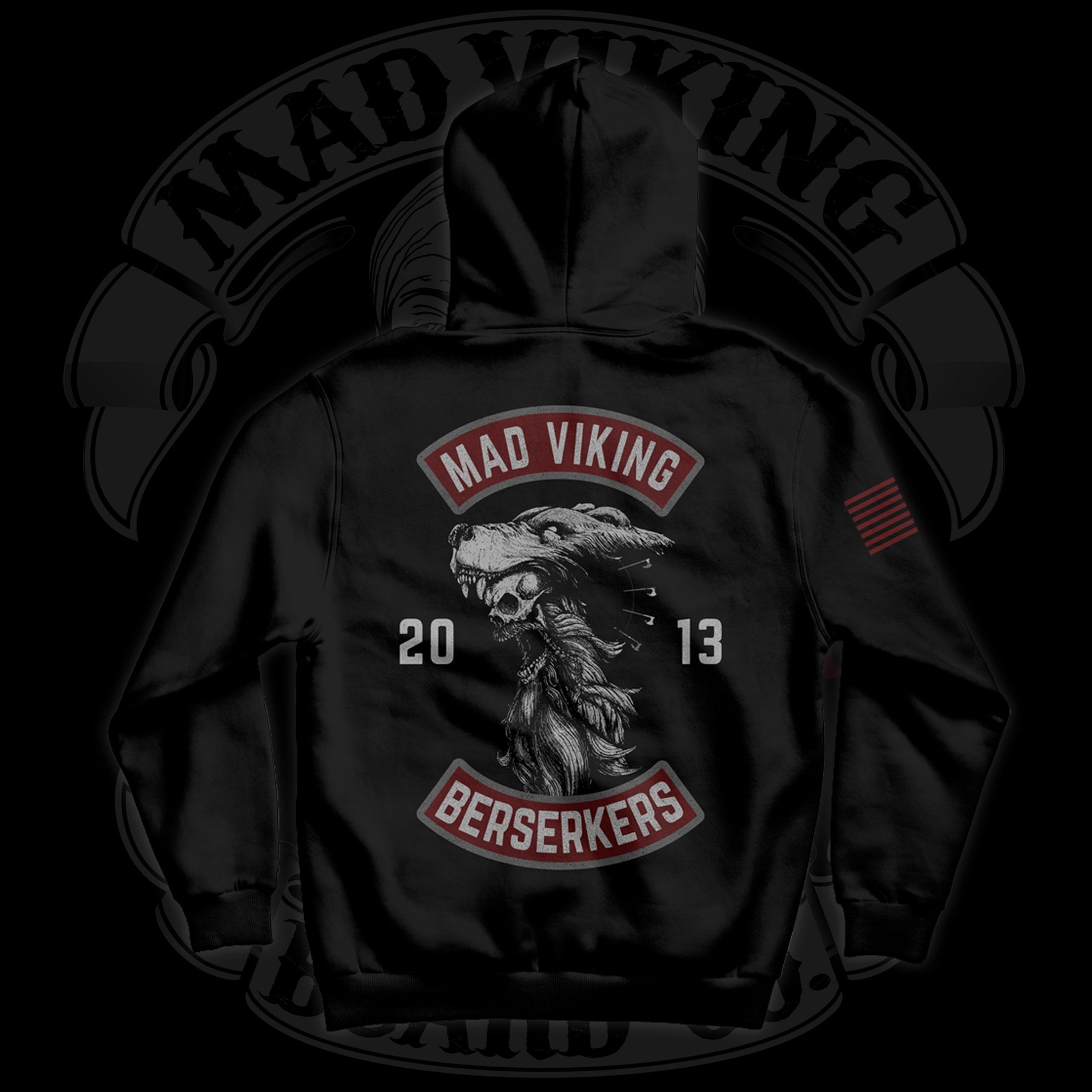 It is proposed by some authors that the berserkers drew their power from the bear and were devoted to the bear cult, which was once widespread across the northern hemisphere. The bear-warrior symbolism survives to this day in the form of the bearskin caps worn by the guards of the Danish monarchs. The Berserker symbolism lives strong here at Mad Viking and The Mad Viking Berserkers Hoodie represents all of our Active Duty Service members and Veterans alike. Many of our members gather to do charity work and raise money for various Veteran outreach programs.