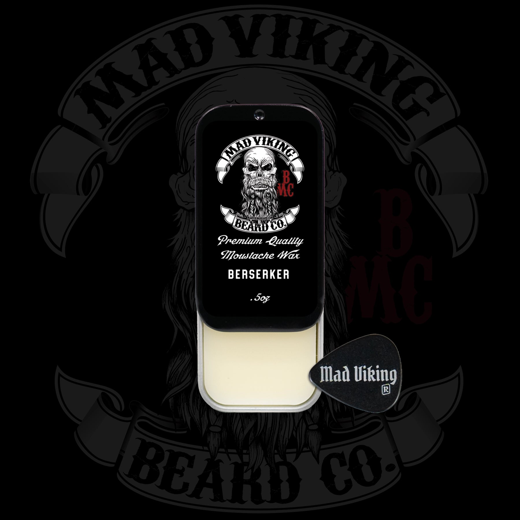 Mad Viking Moustache Wax is designed to be a simple and effective medium/strong hold wax with a pleasant scent. Perfect for a night on the town. Our wax is the perfect product for everything from training new growth to stay out of your mouth as well as styling those handlebars! Mad Viking Moustache Wax comes in half ounce (.5oz) slide top balm type tins, making them super convenient. Tin fits conveniently in your pocket for any touch ups.